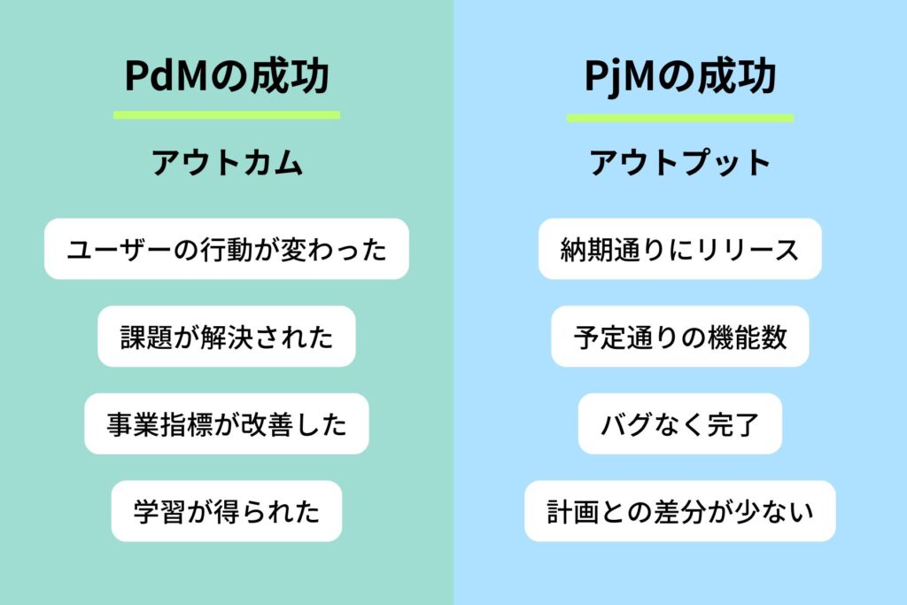 プロジェクトは成功したけれど誰も使っていないという場合、PjM的には成功ですが、PdM的には失敗とも言えます。